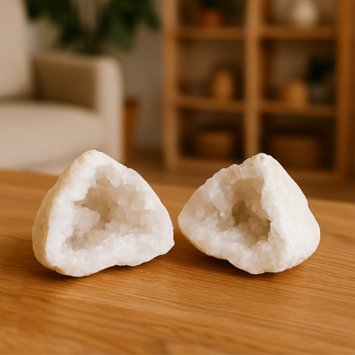 Cada geoda se abre de manera natural para revelar un interior brillante lleno de pequeños cristales que reflejan luz, paz y claridad. Perfecta para decorar, energizar tu altar, tu hogar o tu espacio de trabajo, purificar y elevar la energía del espacio, atraer armonía, protección y bienestar, es un excelente apoyo para meditaciones y alta vibración.
