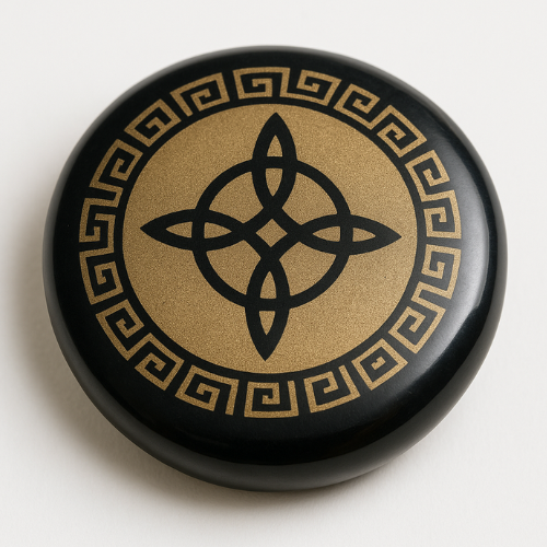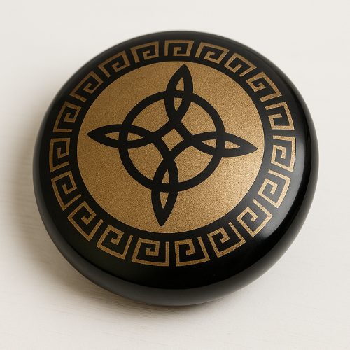 Es una pieza única de protección y poder interior. Elaborada con obsidiana natural pulida y grabada. Esta piedra ayuda a bloquear energías negativas, fortalecer el campo áurico y potenciar la conexión espiritual. Ideal para colocar en tu altar, usar en meditaciones o como amuleto personal de fuerza y transformación.